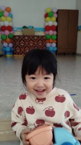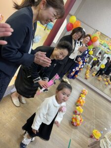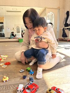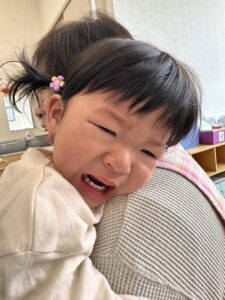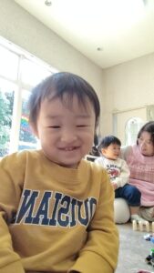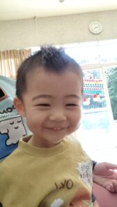 不安で最初は泣いていましたが、先生やお友だちを見つけてニッコリ笑顔を見せてくれました!