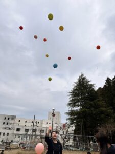今度はお庭でバルーンリリース!