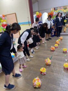 今年度はMちゃん、Rちゃん、Uちゃんの3名が卒園を迎えました。
