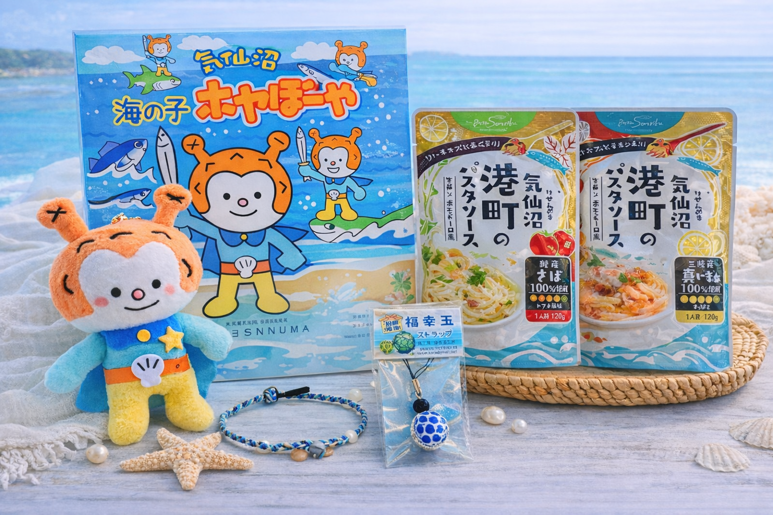 「ホヤぼーや」と、魚介の旨みたっぷりのパスタソースを組み合わせたお土産セット。