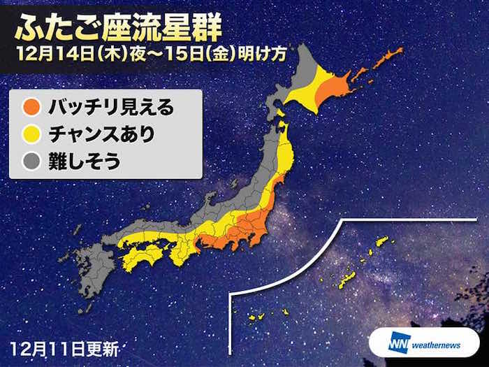 星好きの方必見!ふたご座流星群が、今夜極大となりますよ!